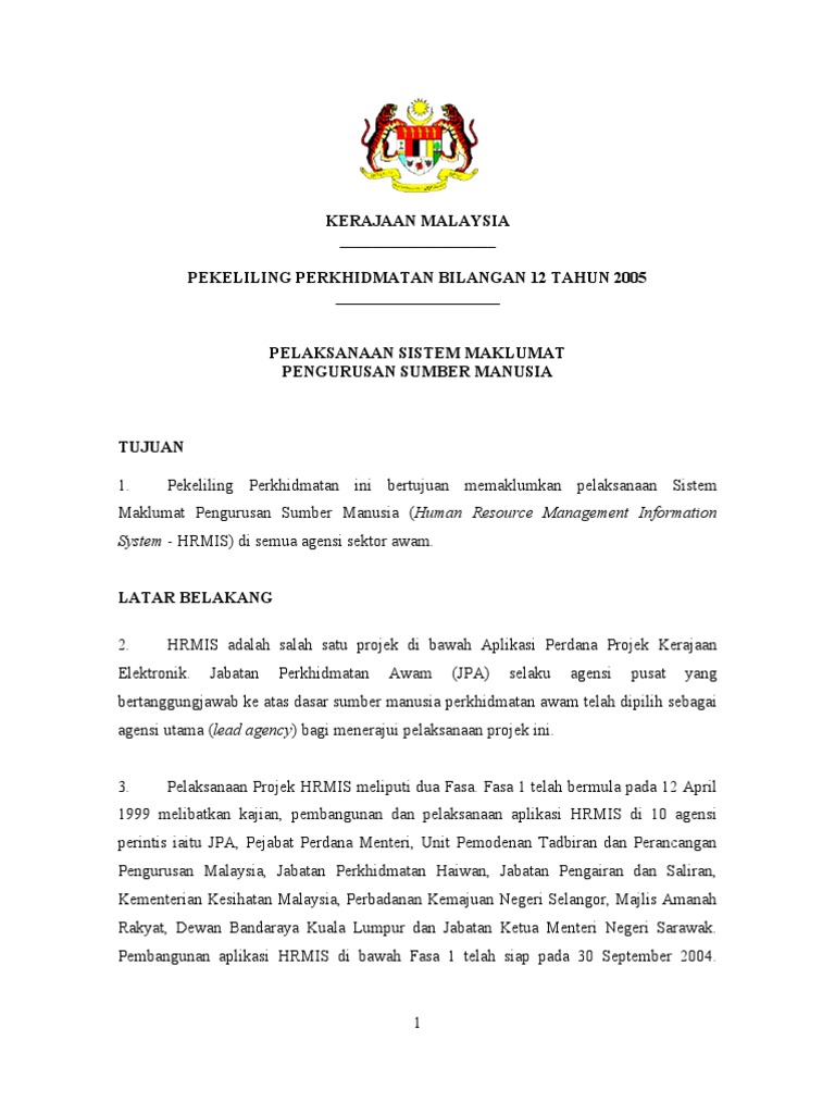 Pekeliling Perkhidmatan Bil 12 2005 Hrmis Pdf
